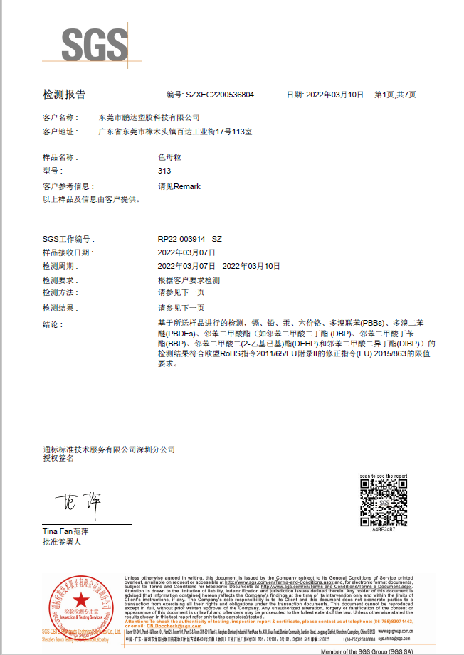 和鵬達(dá)塑膠科技有限公司合作很長(zhǎng)一段時(shí)間了,他們的產(chǎn)品質(zhì)量好,服務(wù)到位,且原材料都通過(guò)SGS測(cè)試符合歐盟REACH,PaHS、ROHS及無(wú)鹵指令,備有美國(guó)FDA級(jí)食品接觸規(guī)格物料,和他們合作完全沒(méi)有后顧之憂(yōu)!